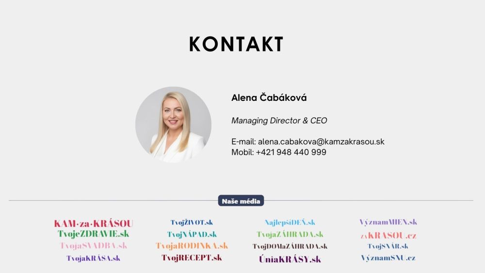 ALIQUANTUM, s.r.o., Alena Čabáková, Tabakova 24, 900 27 Bernolákovo, alena.cabakova@kamzakrasou.sk, 0948 440 999